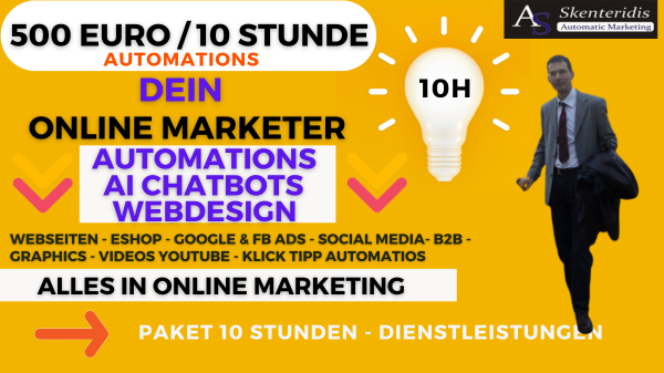 Avraam Skenteridis ist Dipl.-Econom (von Aristoteles Universität Thessaloniki) mit Spezialisierung im Bereich Marketing, Online Marketing und letzte Jahren im Robotics Marketing (automatisierte Prozesse) und Webdesign (Webpages, Landingpages, Eshops, Chatbots). Mit Sitz in Griechenland und sehr grosse Erfahrung beim Agenturen, habe ich mich selbstständig gemacht und habe grosse Interesse an Kooperationen mit anderen Agenturen – Baratungsunternehmen – Dienstleister – usw. von DACH Region (Deutschland – Österreich – Schweiz), da ich auch die deutsche Sprache auch sprechen kann und meine Dienstleistungen sind Perfekt Preis/Value und so können Sie mehr gewinnen (ZEIT-GELD).